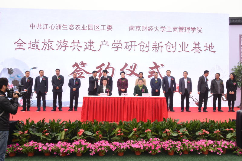 4月8日上午,镇江“醉美江心?乡村漫游节”在镇江江心洲正式开幕。在与会镇江市、丹徒区有关领导见证下,我校工商管理学院党委书记章莹、江心洲生态农业园党工委书记陈静签订了《全域旅游共建产学研创新创业基地协议书》。