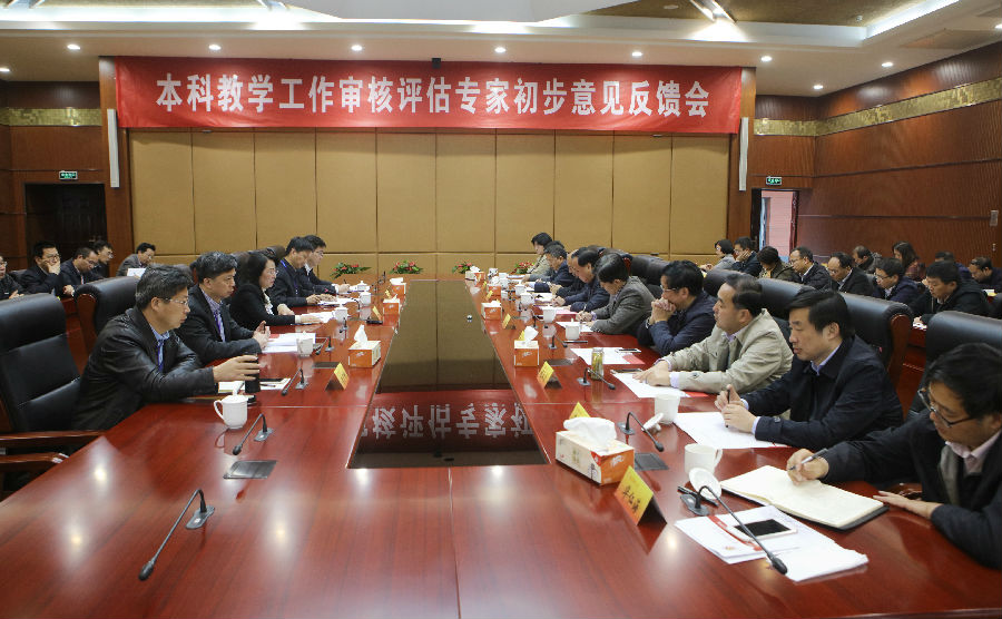 13日上午,专家初步意见反馈会在工科楼二楼会议室召开。徐桂华组长代表专家组反馈审核预评估的总体意见。她对学校领导高度重视人才培养和本科教学工作、科学制定合理的人才培养目标定位、突出人才培养的中心地位和教学工作的基础地位、较为客观到位的自评报告、严谨规范的迎评准备工作等给予了肯定;同时,对照审核评估要素一一反馈了我校存在的主要问题,并为我校进一步完善本科教学工作和做好迎评促建提出了意见和建议。会上,按照反馈会的要求,其他专家组成员突出问题导向,本着帮助学校发现问题、实现发展的目的,逐一进行了个人意见反馈。