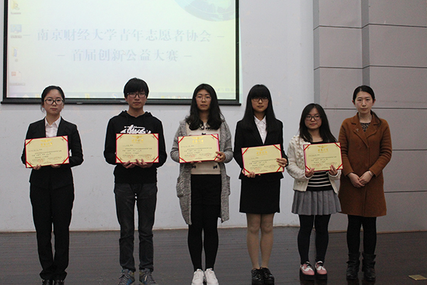 3月31日晚,由南京财经大学青年志愿者协会主办的首届创新公益大赛决赛在仙林校区经济学科楼报告厅精彩上演。校团委布丹丹老师、校青年志愿者协会负责人担任评委。南京师范大学等6所兄弟高校青年志愿者代表应邀观看了比赛。